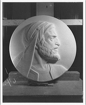 Maimonides medallion, photo by T. Horydczak, approx. 1950, sculpture over the door of the gallery of House chamber, U.S. Capitol. Photo public domain via Library of Congress